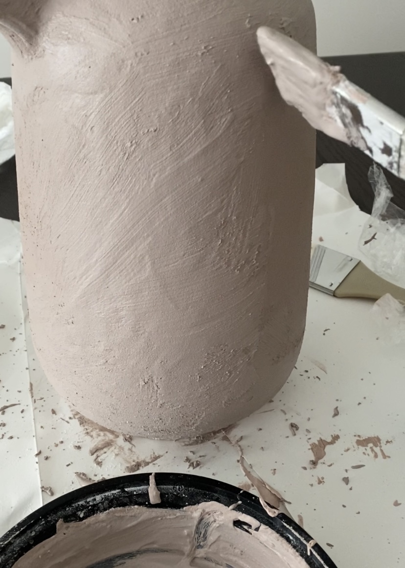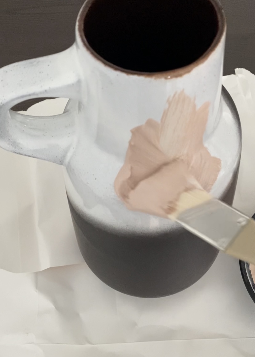 Now it’s time to start painting! Apply a thin layer of the baking soda and paint mixture to your vase. Thin layers will dry more quickly. Wait for it to dry completely before moving to your second coat. This will prevent you from lifting the first coat off when applying the second coat.