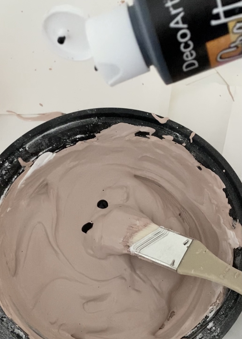 This colour was approximately 2 parts white paint to 1 part brown paint with a couple drops of black paint. Originally only white and brown were used but it was not the colour I was going for. Remember to continue experimenting (only adding a small amount of each colour at a time) until you find a shade you love!