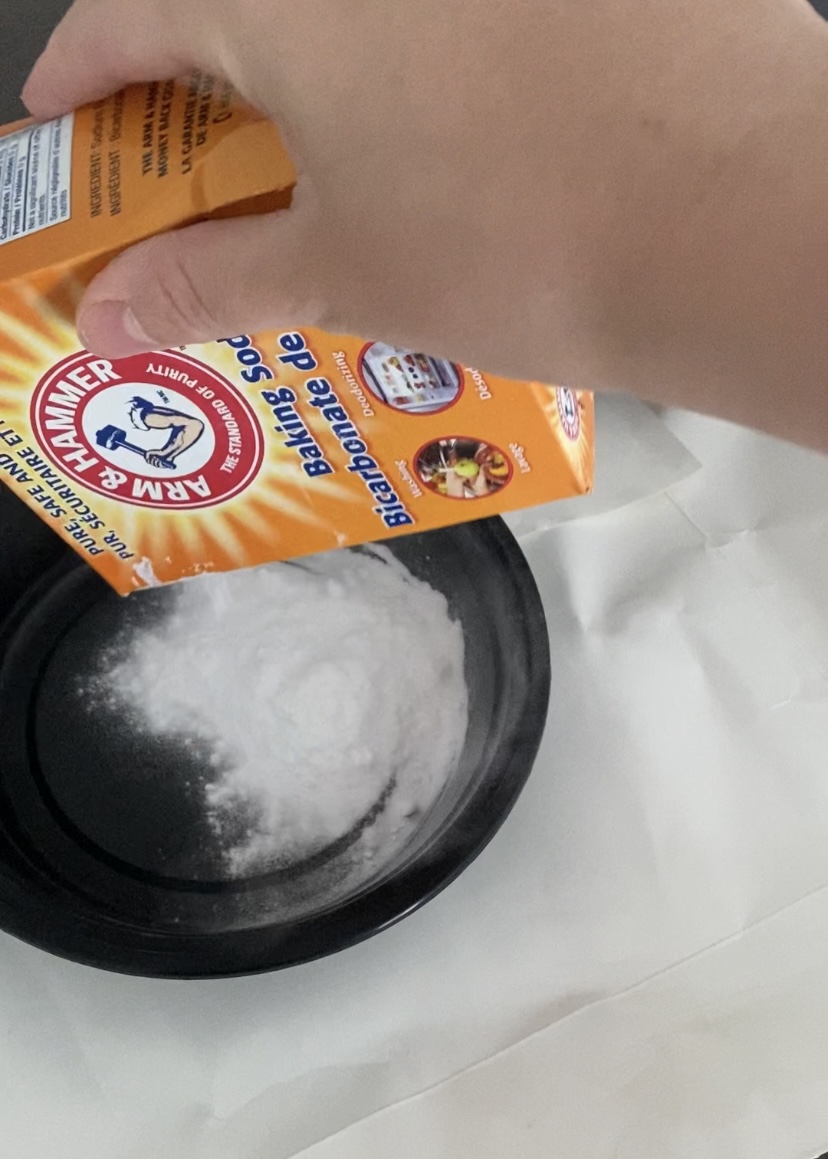 Once the first coat is completely dry, it’s time for your second coat. In my case, this was the final coat but you can certainly add a third if needed. If you are working with glass or a glazed finish, when you apply the second coat you might lift small patches of the first coat if it wasn’t completely dry. If this happens, add a bit more baking soda to your mixture. This helps it act as a paste to patch up the hole.